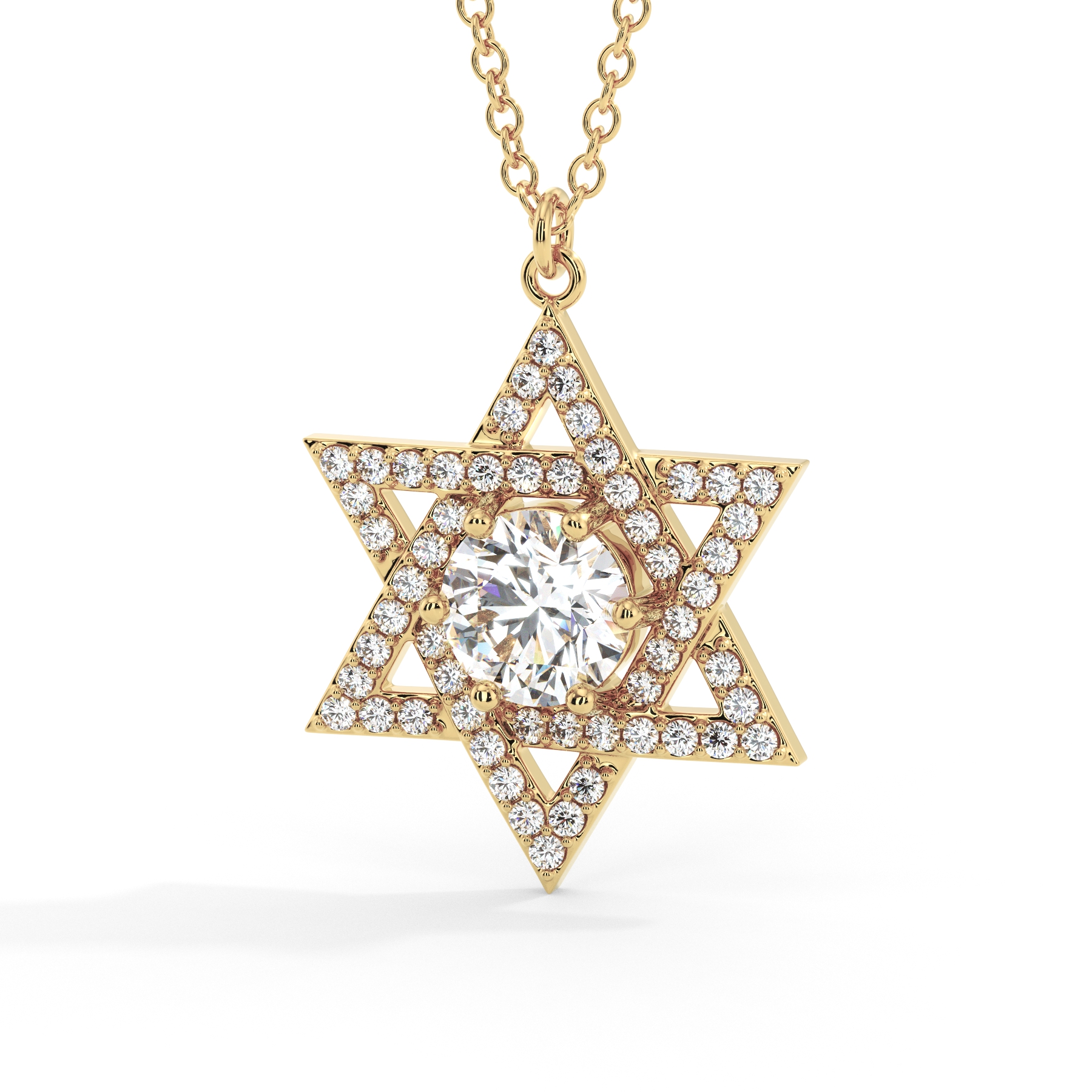 Celebrate your heritage with this 1.80 total carat weight Star of David pendant, featuring a 1.00-carat central diamond and 0.80 carats of side diamonds (D-F, VS). Available in yellow, white, or rose gold with a chain length of your choosing.