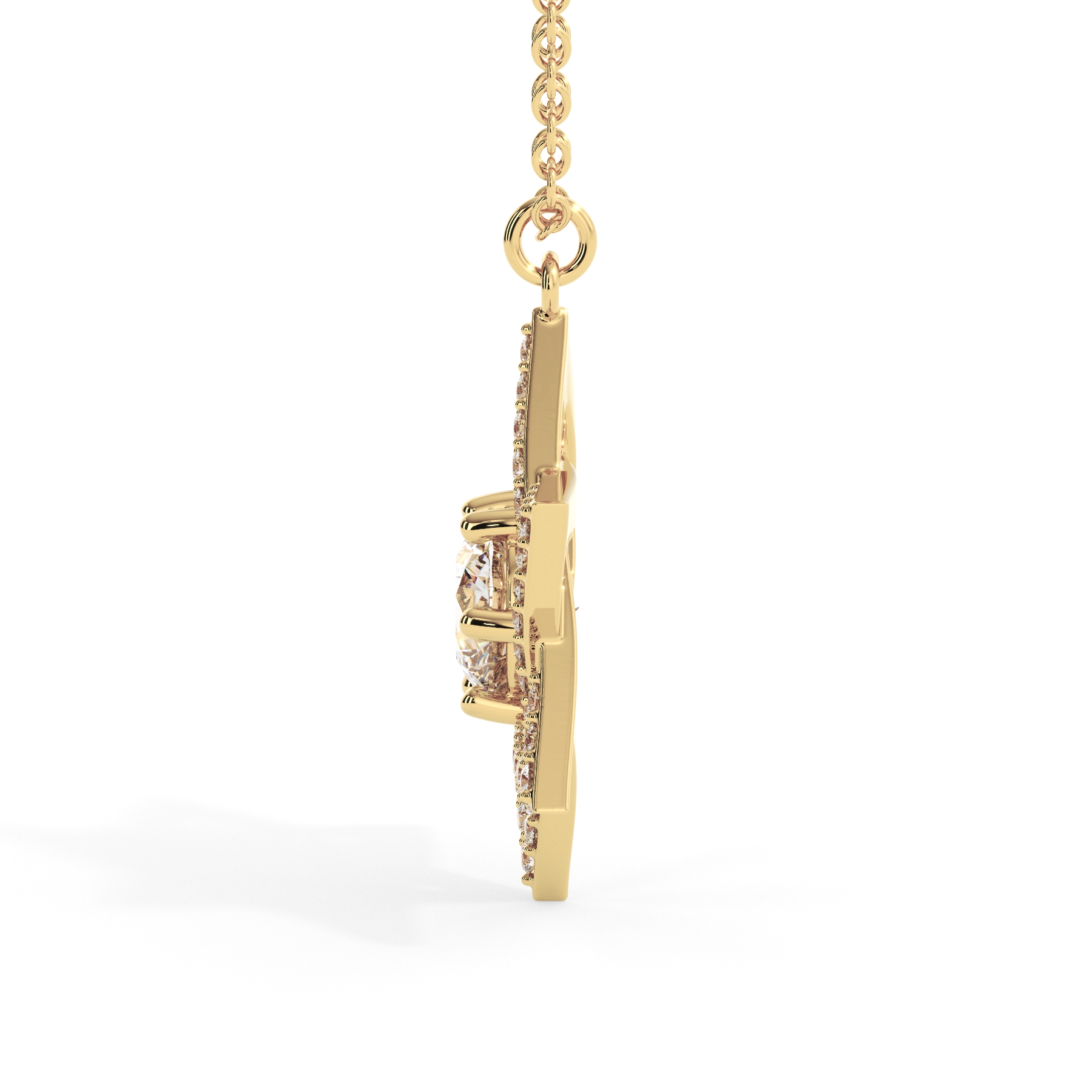 Illuminating faith and elegance, the Celestial Radiance Star of David Pendant is a symbol of both heritage and beauty. At its heart lies a round 1.00-carat lab grown diamond, VS clarity and F color, encircled by a halo of 0.80 carats of complementary side diamonds with D-F color and VS clarity. The total carat weight of 1.80 carats is meticulously arranged to form the iconic Star of David, offering a radiant display of devotion. This pendant is available in your choice of yellow, white, or rose gold, ensuring a personal touch. Tailor your expression of faith with a classic chain available in lengths of 16, 18, 20, or 24 inches to suit your preference.