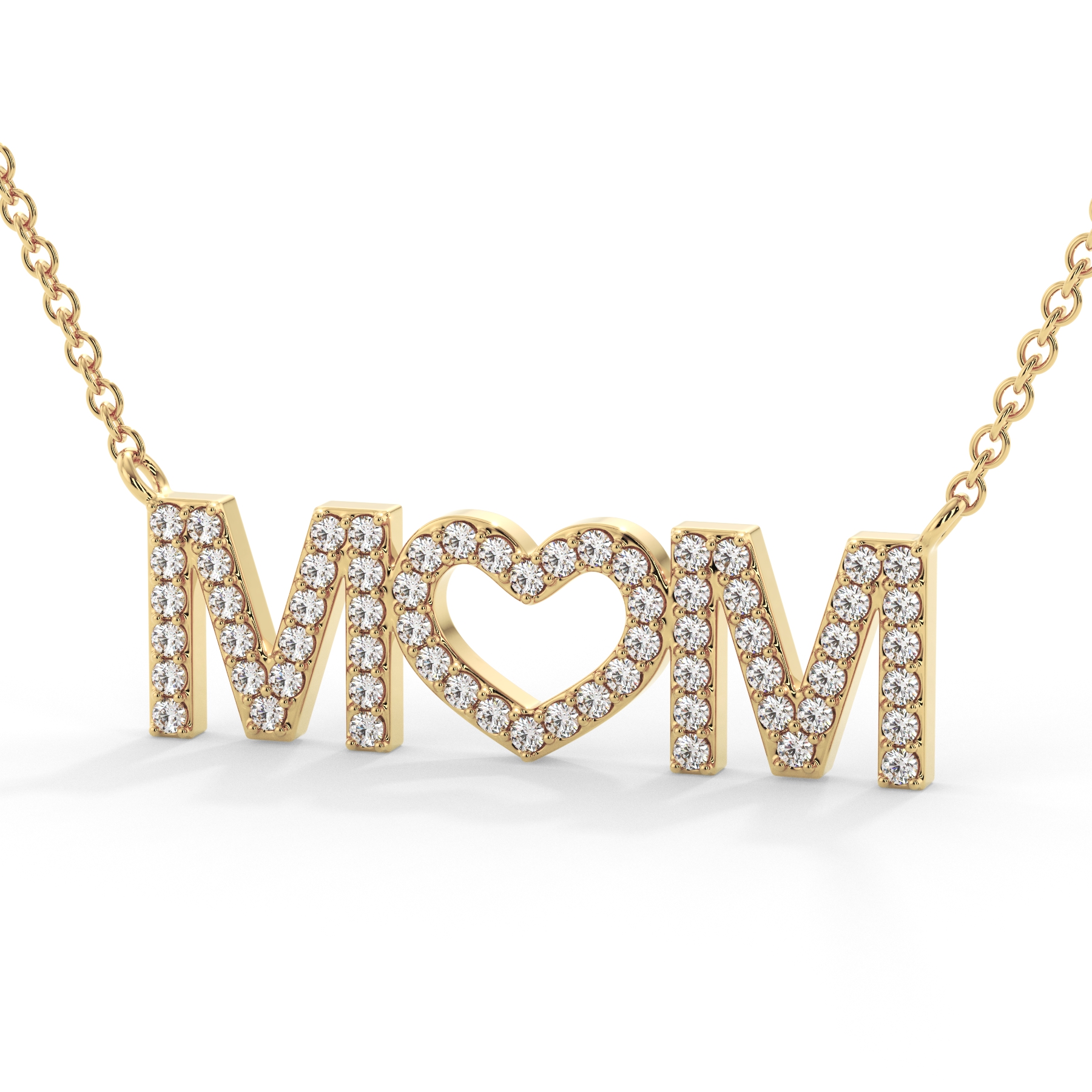 Celebrate the everlasting bond with our Eternal Love ‘Mom’ Diamond Pendant, a symbol of unwavering affection and appreciation. This pendant features 1.00 total carat weight of pristine round diamonds, each with a VS clarity and F color, intricately set to spell ‘Mom’ with a heart replacing the ‘O’. Crafted with the option to personalize in yellow gold, white gold, or rose gold, this piece is a timeless treasure. The pendant comes with a classic chain available in various lengths: 16 inch, 18 inch, 20 inch, or 24 inch to suit your preference.
