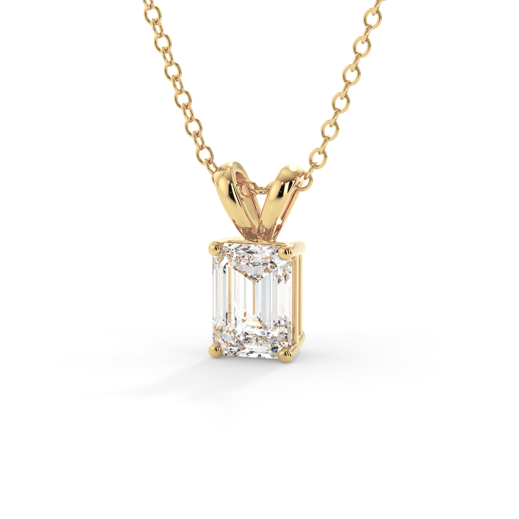 Grace your neckline with this 1.50-carat emerald-cut diamond (F, VS) pendant, customizable in preferred gold settings and chain lengths of 16”, 18”, 20”, or 24”.
