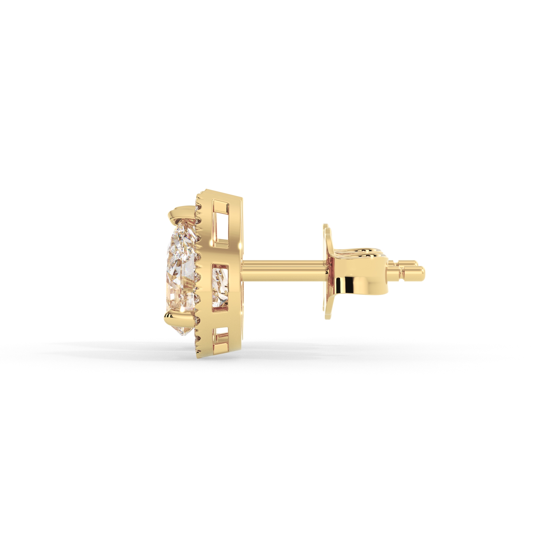 The Pearlescent Halo Lab Grown Diamond Earrings offer a dazzling display of light and luxury. Each earring features a centrally poised 1.00-carat pear-shaped lab grown diamond, celebrated for its pristine VS clarity and F color, ensuring a pure and vibrant sparkle. This central gem is embraced by a halo of 0.35 carats of side diamonds per earring, each meticulously selected for their exceptional D-F color and VS clarity, culminating in a total carat weight of 2.70 carats for the pair. The earrings are a perfect amalgamation of classic elegance and modern design, and they can be custom-created in your choice of yellow, white, or rose gold to suit your preferred style.