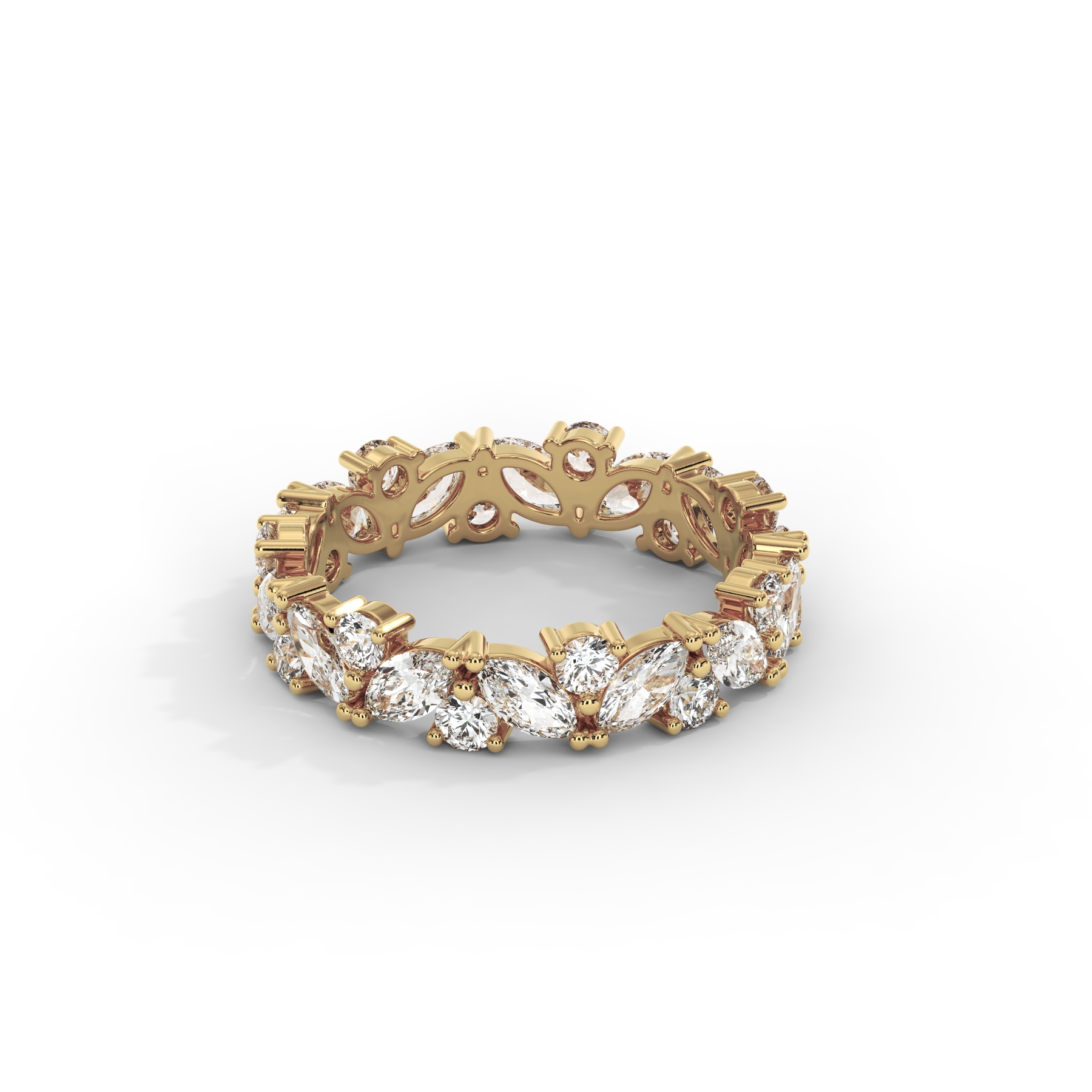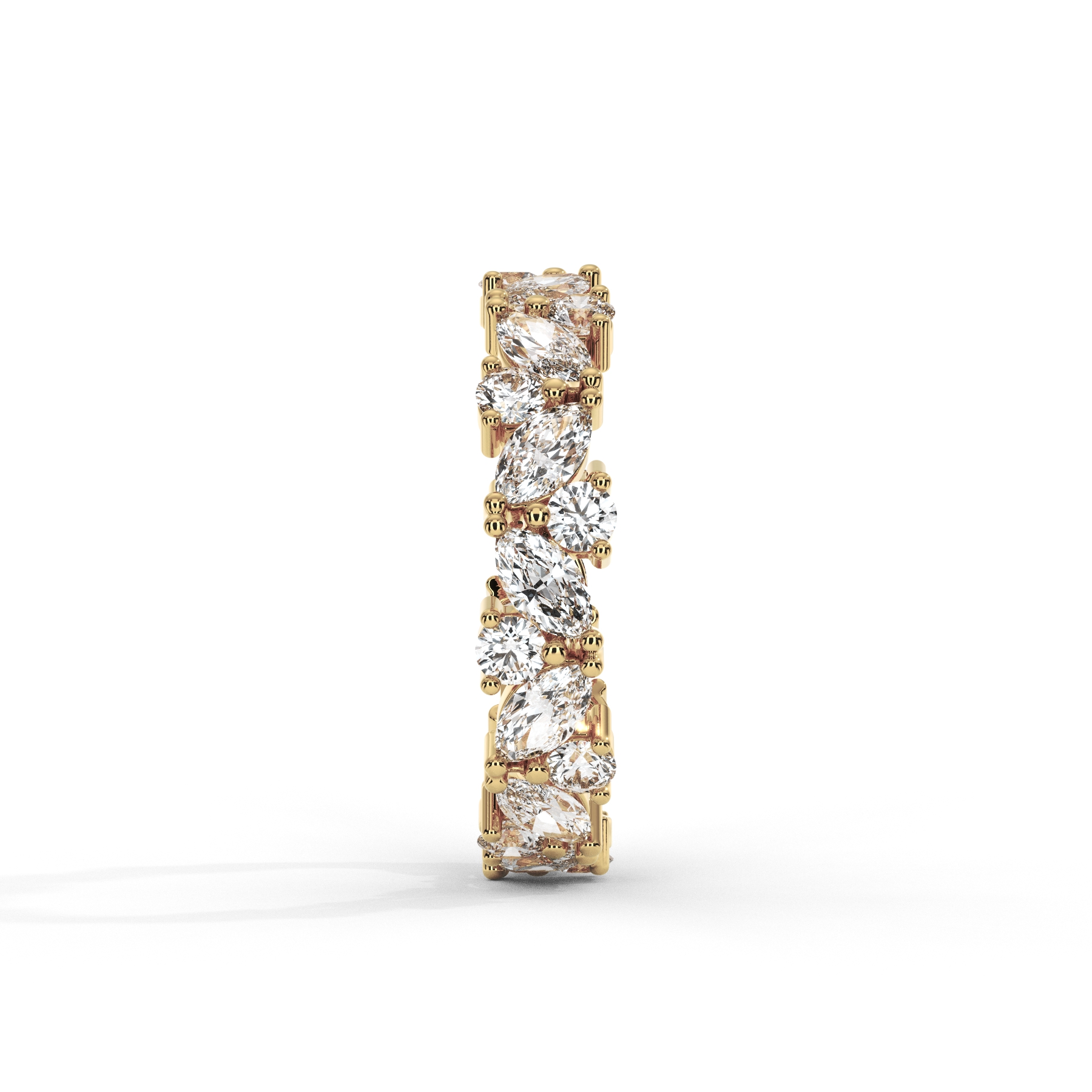 Marquise and round diamonds (3.00 carat total, D-E, VS) weave a story of everlasting elegance in this eternity ring, available in yellow, white, or rose gold—a versatile and opulent symbol of enduring love.